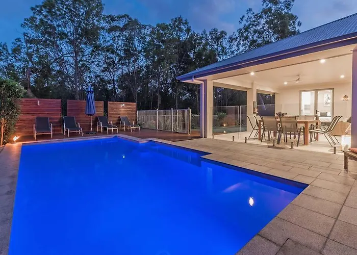 El Serenity Retreat Noosa Luxury Guest Suite W Private Solar Heated Pool Noosaville está situado a una distancia de 4 km del Río Noosa y ofrece una piscina privada. El apartamento de 160 m² dispone de una terraza con vistas al jardín.